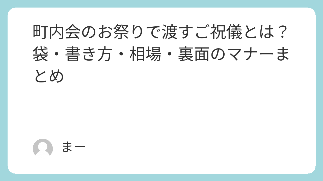 この記事では、町内会祭りでのご祝儀マナーを初心者でも分かりやすく解説します。