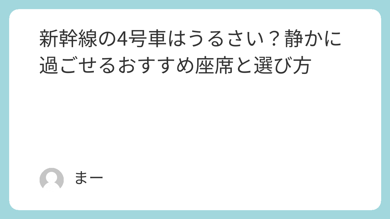 ここまで「新幹線の4号車がうるさい理由」と「快適に過ごすための代替選択肢」を紹介してきました。