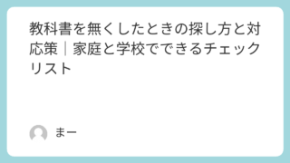 生活 教科書を無くしたときの探し方と対応策|家庭と学校でできるチェックリスト 子どもが教科書を無くしてしまったとき、保護者は「どこにあるのだろう?」と焦ってしまいますよね。実は教科書が見つからないときに探すべき場所や対応の手順には、ちょっとしたコツがあります。この記事では、学校や家庭でチェックすべき探し方のポイントか... 生活