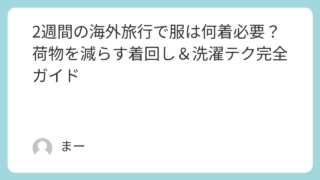 生活 2週間の海外旅行で服は何着必要?荷物を減らす着回し&洗濯テク完全ガイド 2週間の海外旅行を控えて「服は何着持っていけばいいの?」と悩む方は多いですよね。荷物をできるだけ軽くしたいけれど、現地で快適に過ごせるだけの服も必要です。実は、持ち物の量は「洗濯するかどうか」「着回しできる服を選ぶか」で大きく変わります。こ... 生活